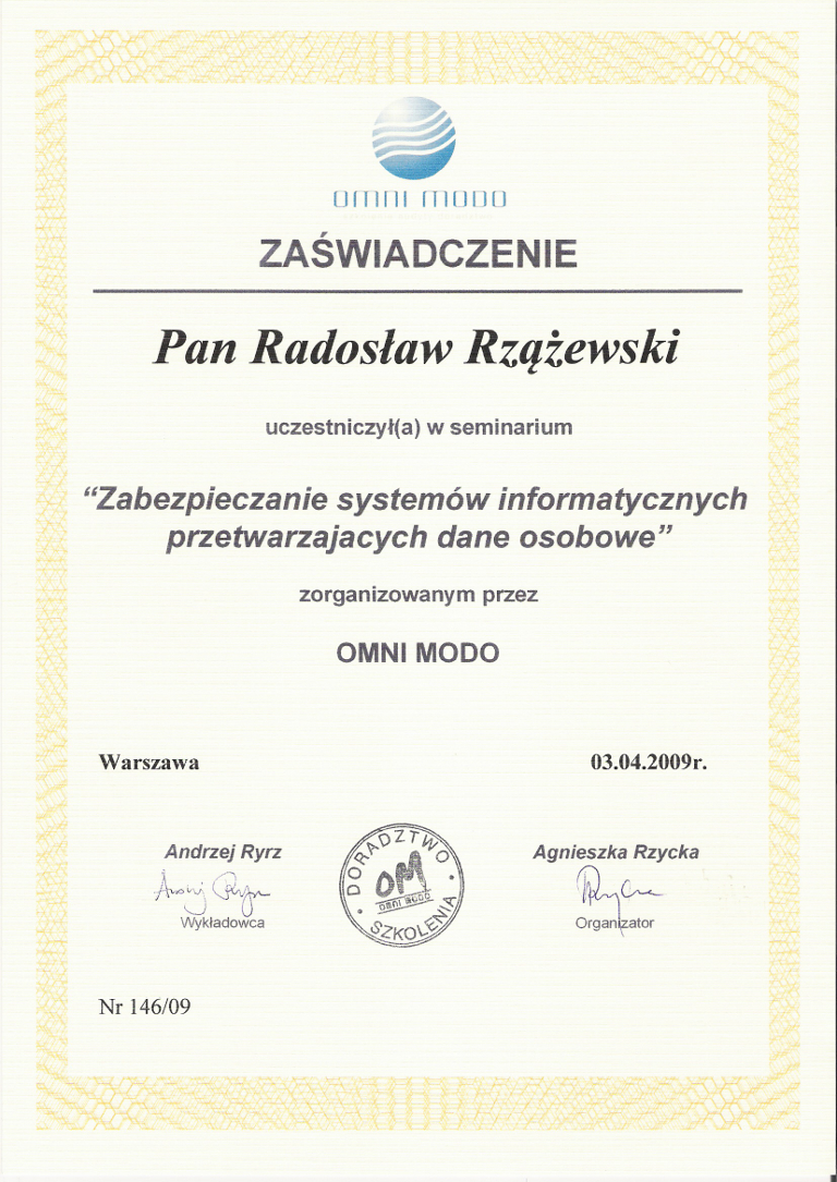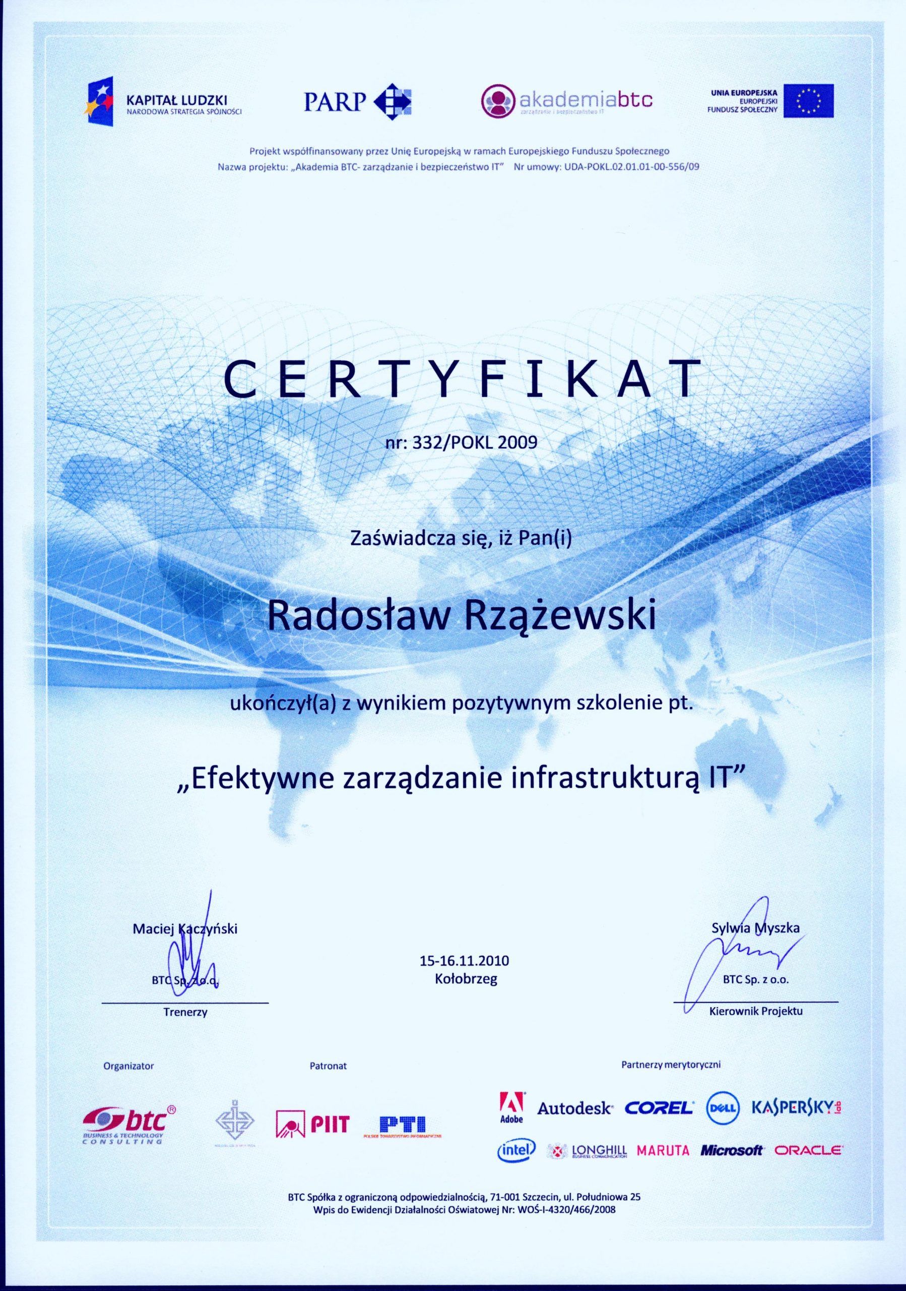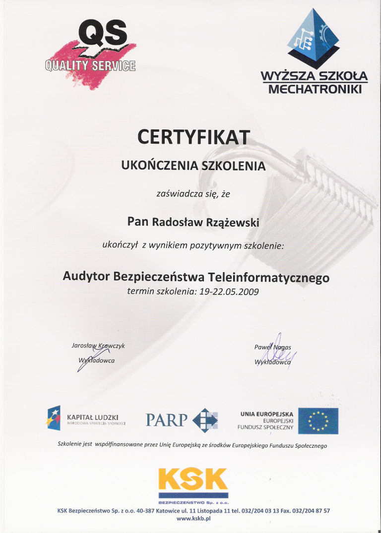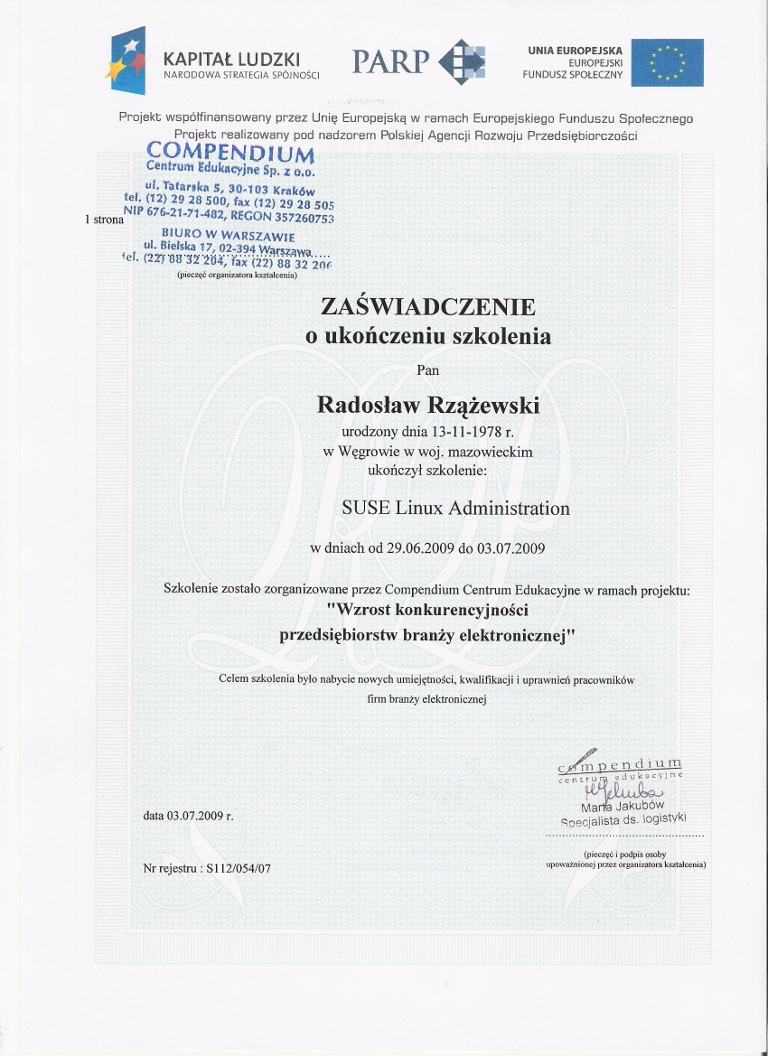 Ukończone kursy, szkolenia i zdobyte Certyfikaty do roku 2017